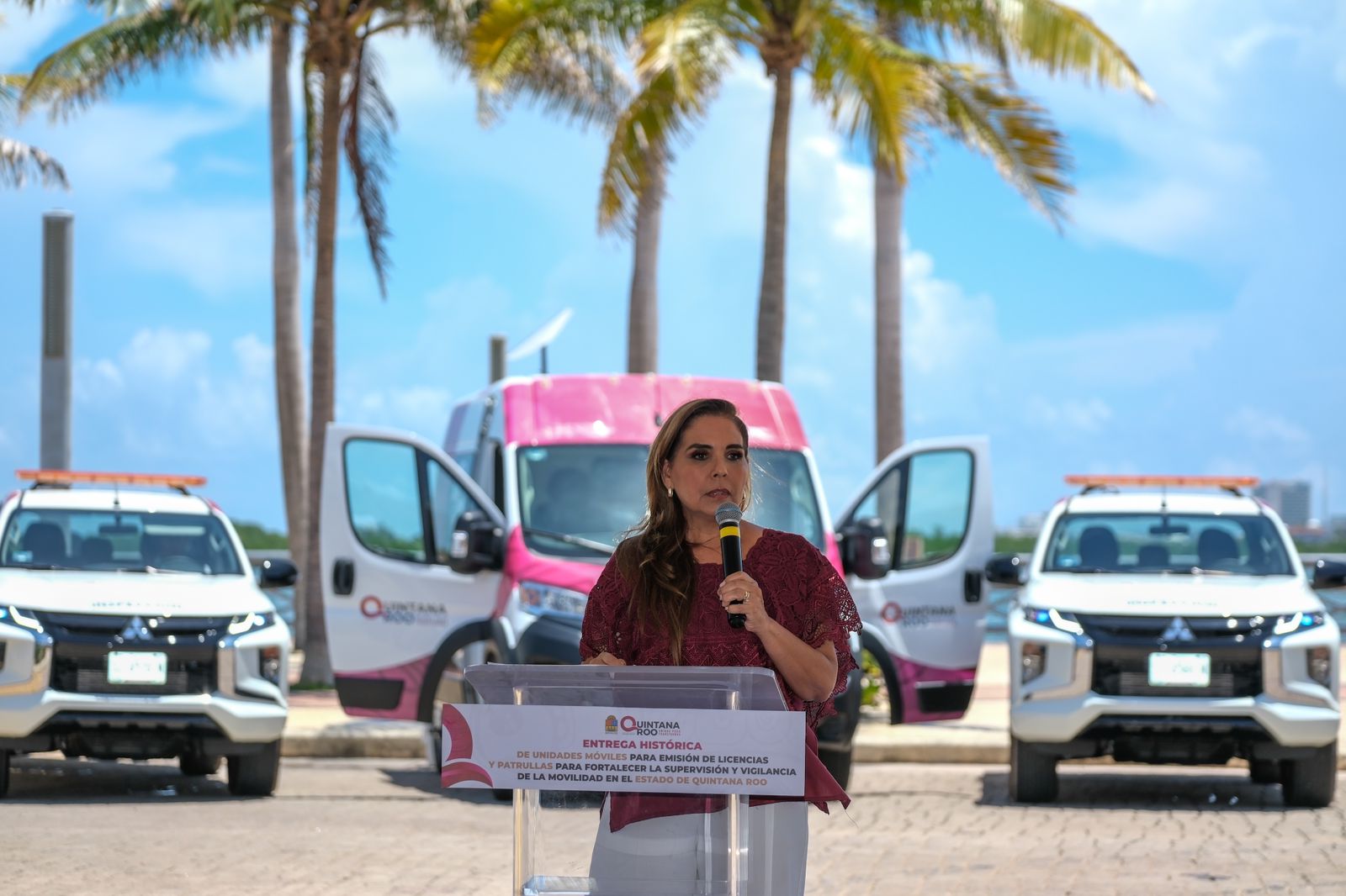 Cancún.- En una firme demostración de compromiso con el bienestar y la seguridad de los ciudadanos de Quintana Roo, la gobernadora Mara Lezama Espinosa entregó 35 patrullas para fortalecer la supervisión y vigilancia de la movilidad, así como 2 unidades móviles para la emisión de licencias al Instituto de Movilidad (IMOVEQROO).