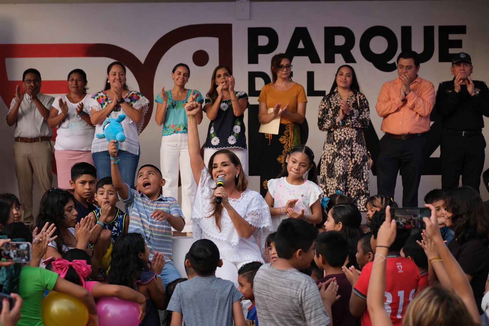 Como parte de estas acciones integrales para la construcción de paz, la gobernadora Mara Lezama construye y recupera espacios públicos que permitan la convivencia familiar y el bienestar social, como el Parque Cultural Urbano de la Paz en Cancún, ubicado en Villas Otoch Paraíso.