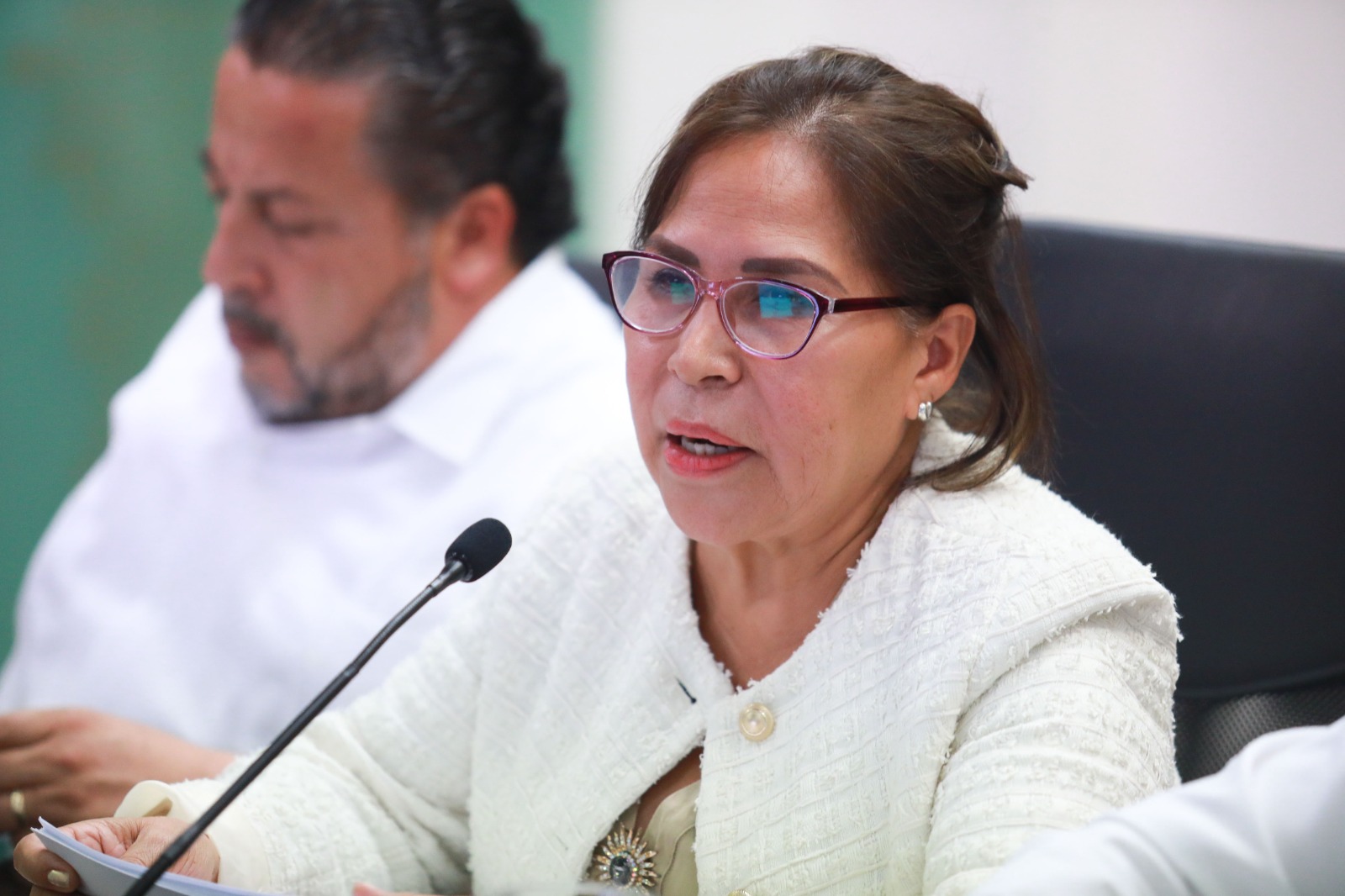 Chetumal.- En atención al llamado de la XVIII Legislatura del Congreso del Estado, la titular de la Secretaría de Finanzas y Planeación (SEFIPLAN), Martha Parroquín Pérez, compareció este lunes ante la Comisión de Hacienda, Presupuesto y Cuenta, que preside el diputado Renán Eduardo Sánchez Tajonar, para ampliar la información sobre el destino de los recursos públicos estatales del Segundo Informe de Gobierno de la gobernadora Mara Lezama Espinosa.